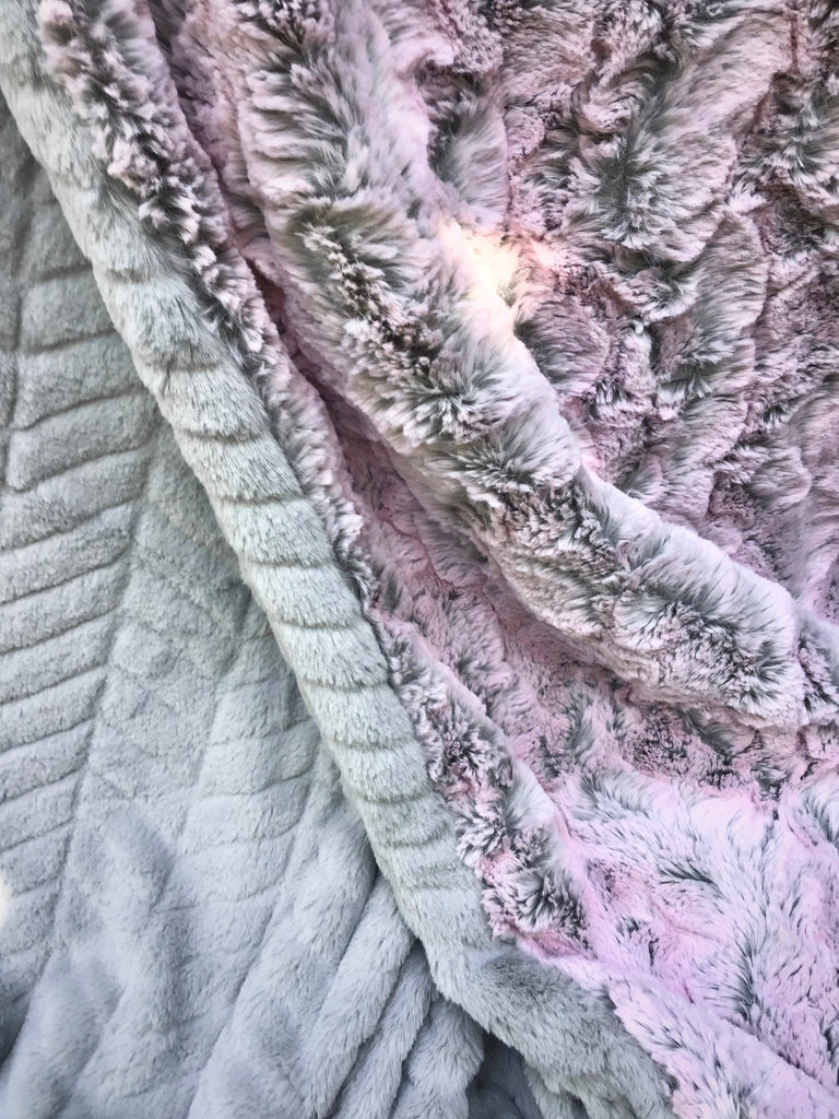 Faux Fur Pink Crush with Grey Chevron